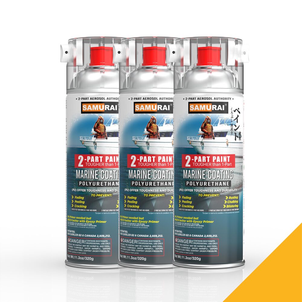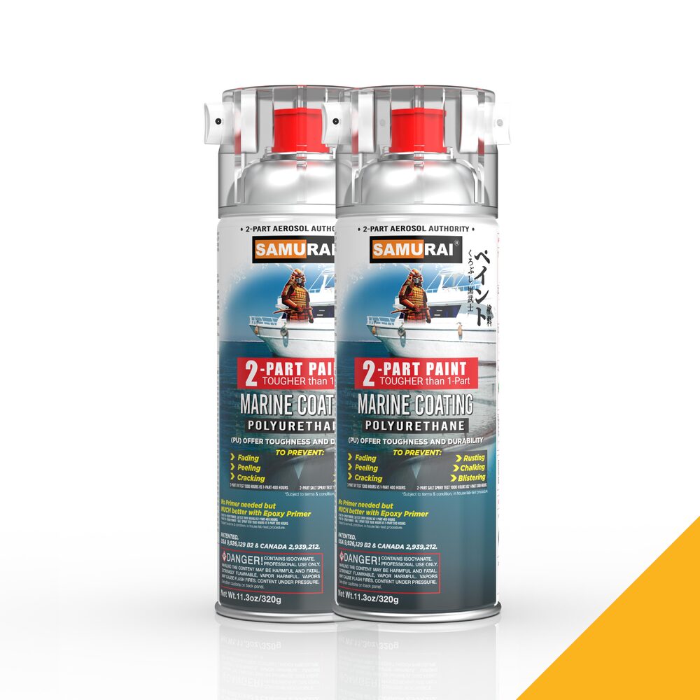 - [Premium Boat Spray] 2-parts spray paint innovation mixing 2 chemical components in one aerosol can combine both hardener and paint solution when needed, making it hassle free and user friendly that conveniently substitutes against 1-Part paint and no mess to clean up.